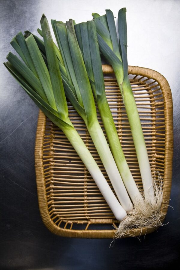 Leeks (Allium ampeloprasum) are the gourmet, “gentle giants” of the onion family. With their long, cylindrical stalks and elegant fan of blue-green leaves, they offer a refined, buttery sweetness that is far more subtle and sophisticated than a standard white onion. A staple in French and British kitchens, they are the secret to creamy soups and silky braises.