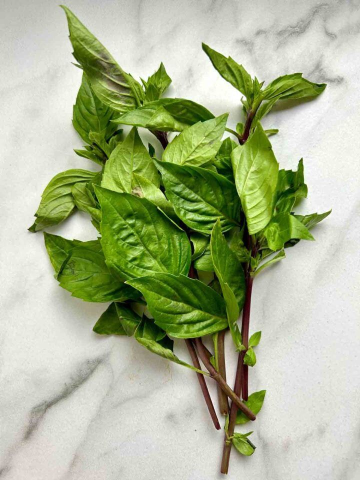 Top whole basil leaves onto pizza, finish pasta with whole or thinly sliced leaves, blend it into sauces, puree it into soups, use it to garnish avocado toast or turn it into an ice cream topping!