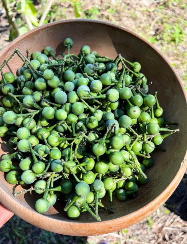 Thai Eggplant (Solanum melongena), also known as Thai Brinjal or Makhuea Pro, is the essential “crunch” of Southeast Asian cooking. Unlike the large, spongy purple varieties common in the West, these golf-ball-sized beauties are firm, seedy, and hold their shape perfectly in simmering broths, making them the ultimate addition to authentic curries.